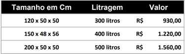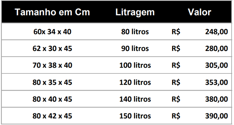 Para aquários acima de 500 litros, é necessário solicitar um orçamento personalizado. Diversos fatores podem influenciar diretamente no valor final, como: